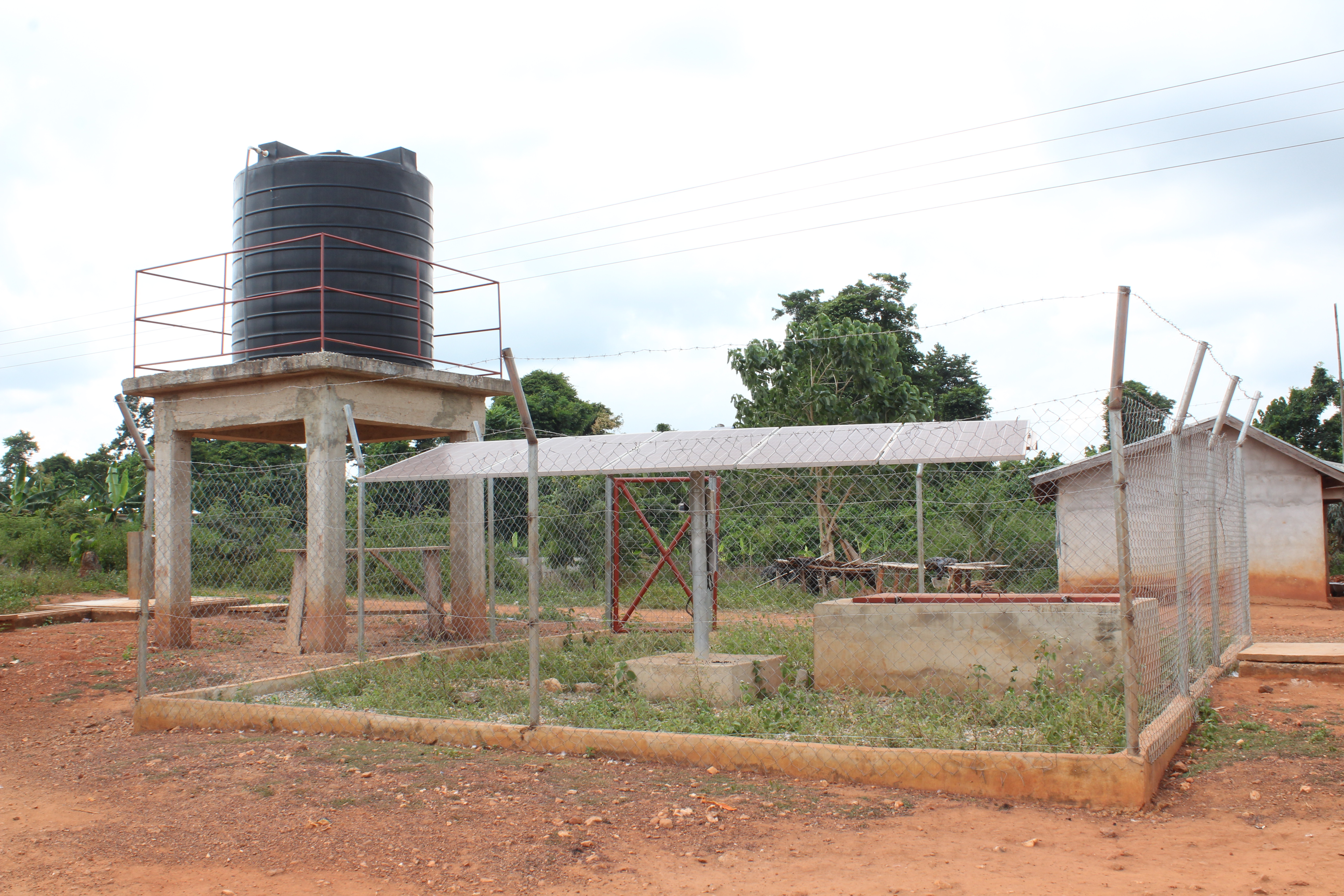 Mechanised borehole fitted with electric pump and overhead tank at Ofoase SHS Water Ofoase