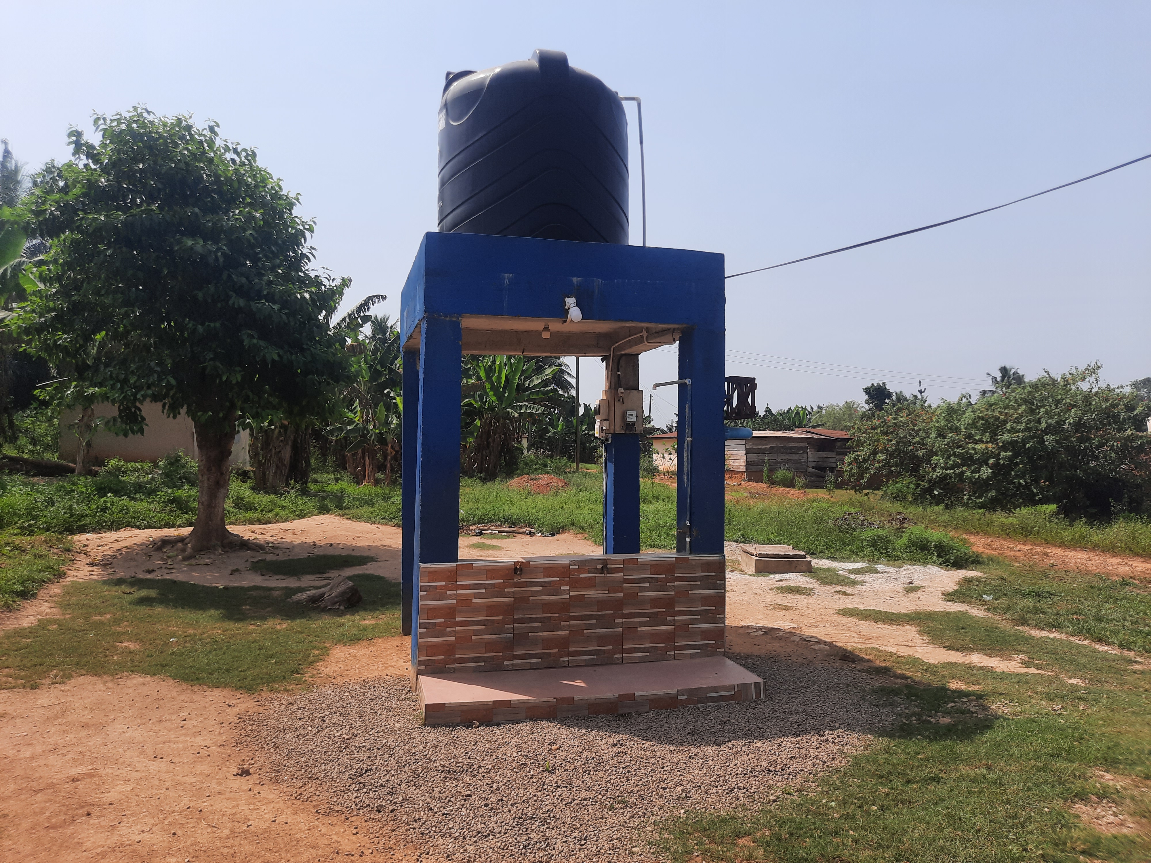 Mechanised borehole fitted with electric pump and overhead tank water